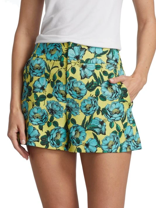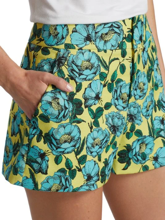 Cut from a vibrant floral cady for supple structure, these high-waisted shorts are finished with side and back pockets.