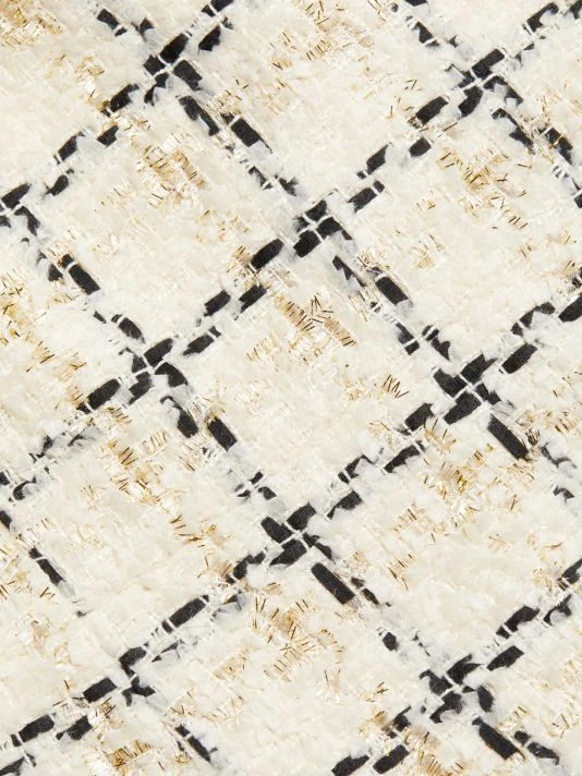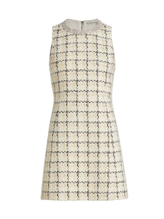 A glittering embellished collar lends style to Alice + Olivia’s tweed shift dress, designed with a polished look.