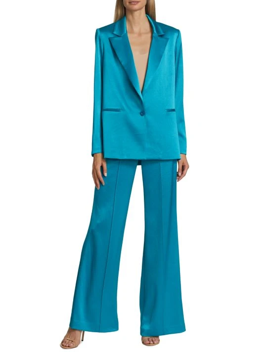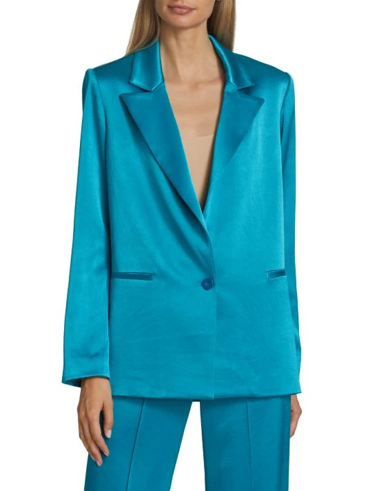 The Denny blazer by Alice + Olivia is crafted of satin in a single-breasted silhouette.