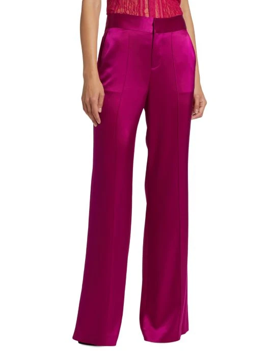 Crafted of smooth satin, the Dylan pants from Alice + Olivia feature a high-rise waist with tailored front pleats. Side on-seam pockets and back welt pockets finish this wide-leg style.