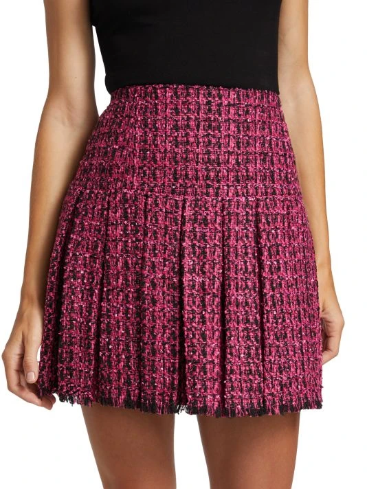 Box pleats shape the silhouette of this mini skirt, crafted in a textured two-tone tweed fabrication.