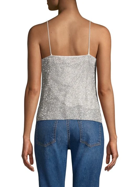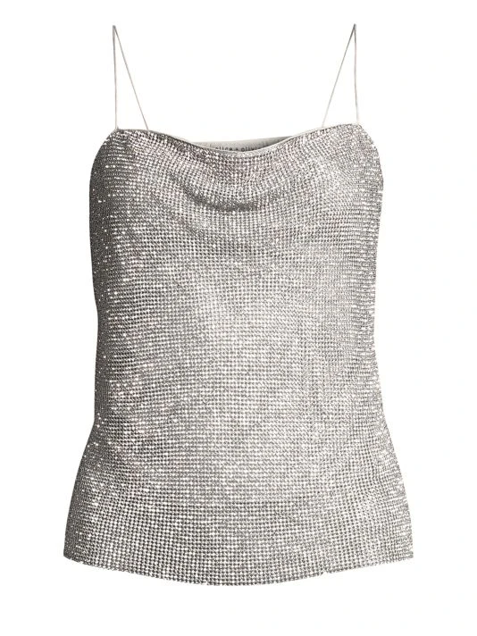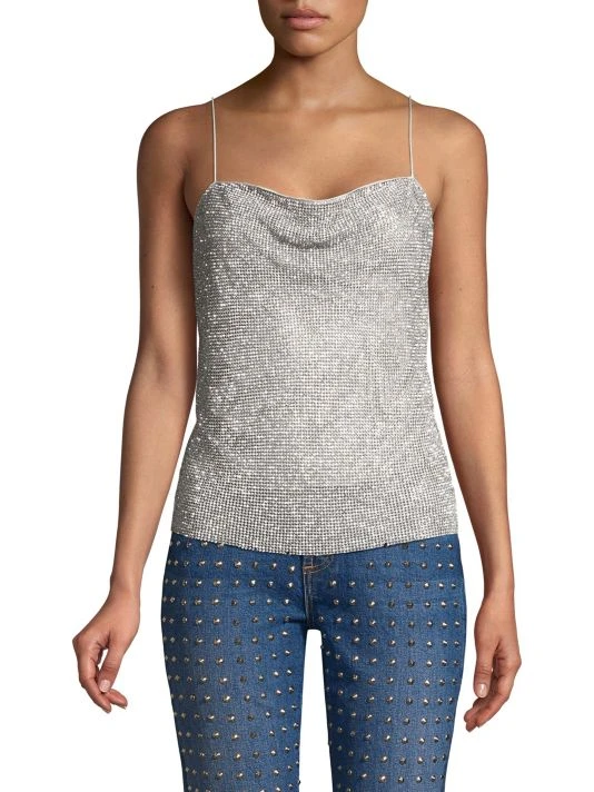 Chic cowl neck tank top encrusted with crystal detailing.