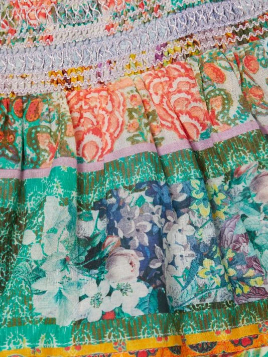 The Jojo miniskirt from Alice + Olivia is crafted of printed cotton with two ruffle tiers and a high-smocked waistband.