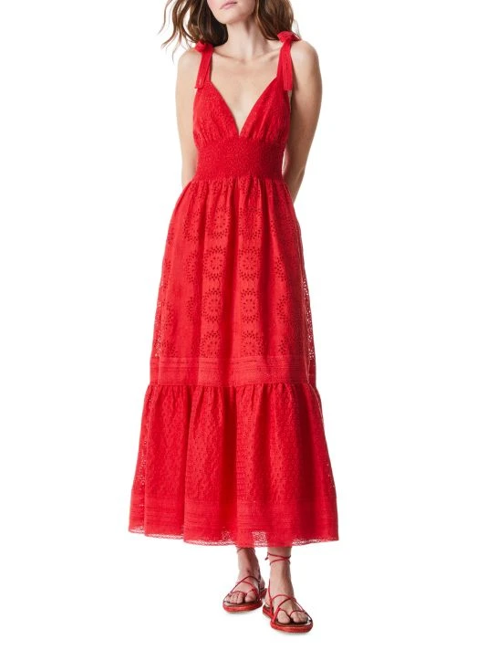 The Levine maxi dress from Alice + Olivia is finished with eyelet embroidery and a tiered skirt.