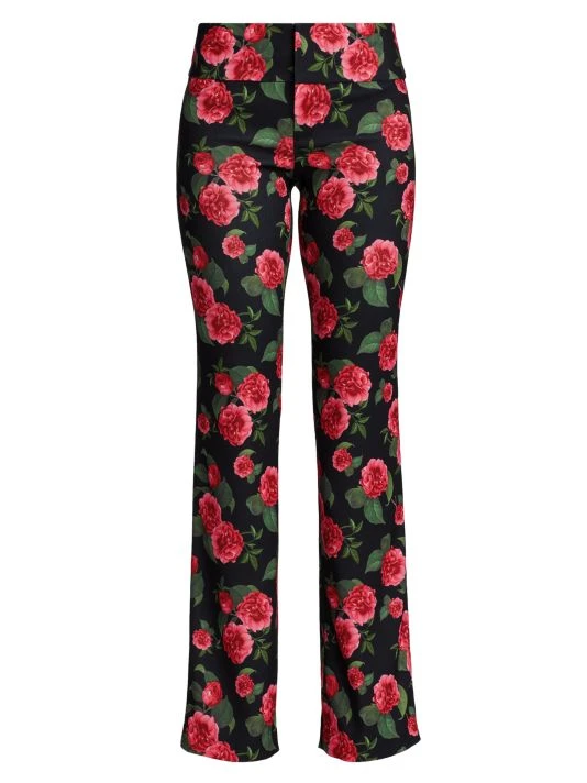 The Olivia trousers from Alice + Olivia feature a slim fit through the hip and thigh that tapers into a slight flare leg. A wide waistband and a romantic rose print complete this polished style.