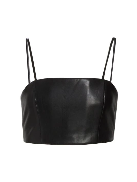 Crafted of smooth vegan leather, the Pearle crop top by Alice + Olivia is finished in a minimalist strappy style.