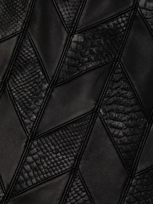 Crafted of luxe lamb leather, Alive + Olivia’s Riley miniskirt boasts textured chevron and crocodile-embossed patterning.
