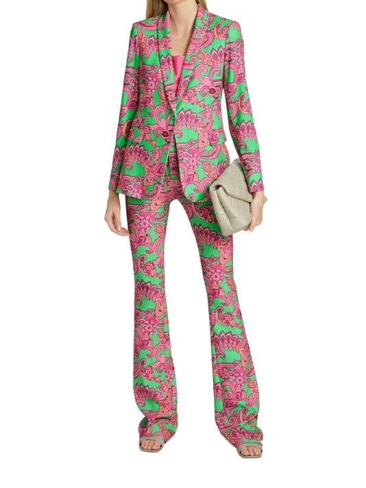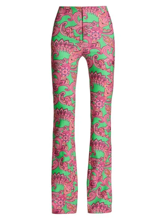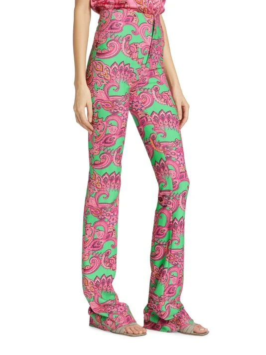 Vibrant paisley print covers these stretch boot-cut trousers, designed with a flattering high-waist silhouette.