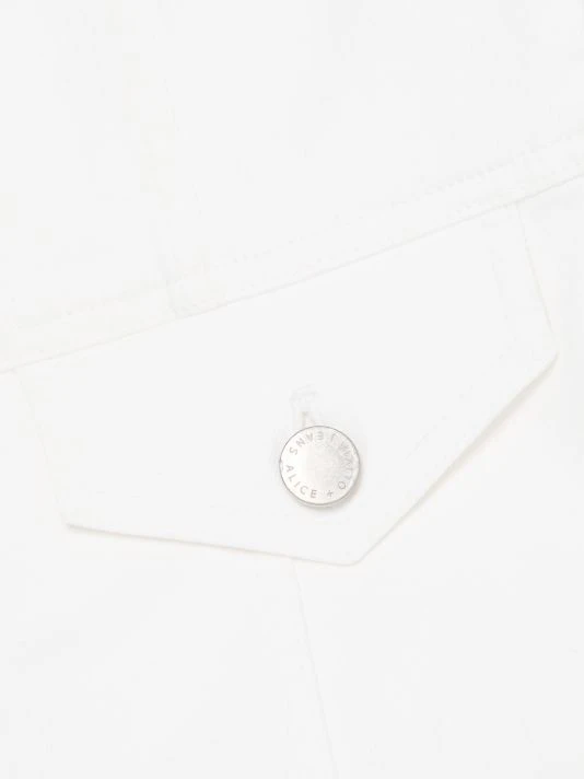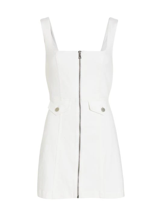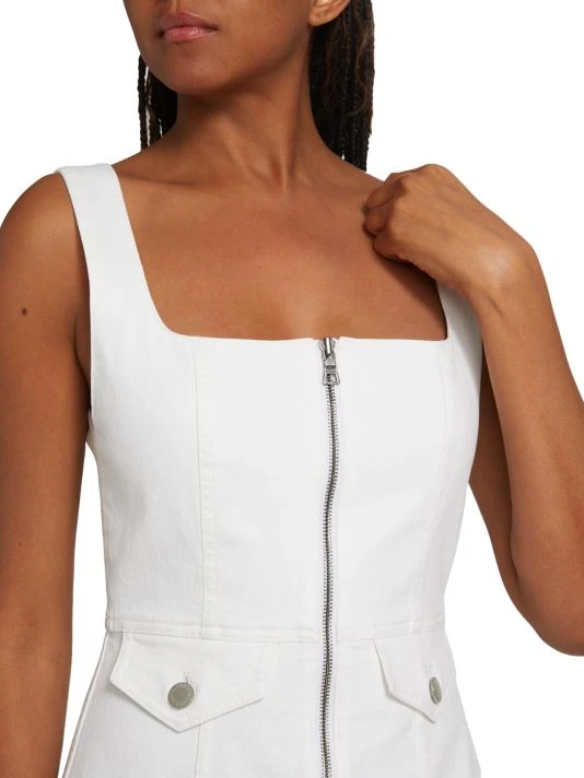 Alice + Olivia’s Thersa minidress is crafted of cotton denim with a hint of stretch. Designed with button flap pockets at the waist, this square-neck style zips at the front.