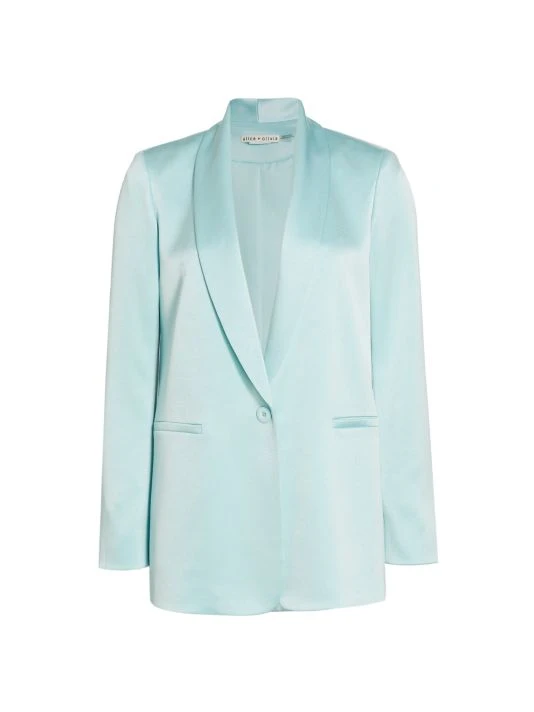 Alice + Olivia’s Yuriko blazer is crafted of lustrous satin. Cut for a boxy fit, this tailored style features shawl lapels, structured shoulders, and dual welt pockets at the front.